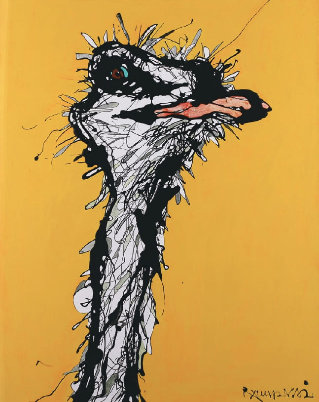ポアリングによる線と現実に捕らわれない色で、動物をモチーフにした