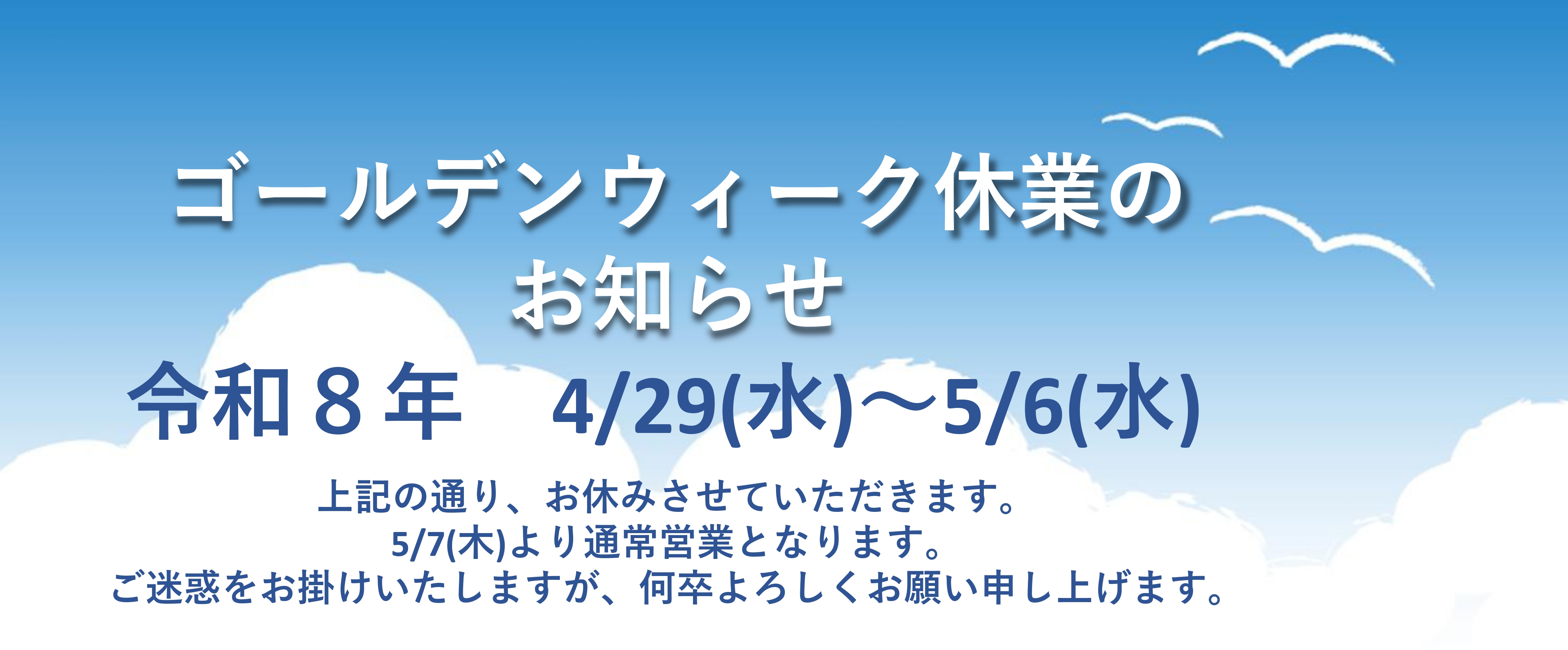 2025年5月3日(土) ~ 5月6日(火)を春期休廊とさせていただきます。